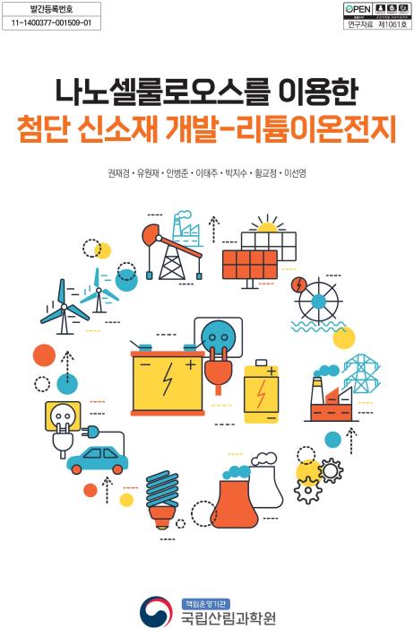 산림청 국립산림과학원은 최근 주목받고 있는 이차 전지의 일종인 리튬이온전지 분야에 나노셀룰로오스를 적용한 연구 결과를 모은 ‘나노셀룰로오스를 이용한 첨단 신소재 개발-리튬이온전