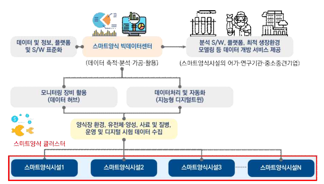 <스마트양식 빅데이터센터 개념도>해양수산부는 ‘스마트양식 빅데이터센터’ 사업자로 ‘부산광역시’를 최종 선정하였다고 밝혔다.‘스마트양식 빅데이터센터’는 양식업의 스마트화를 위