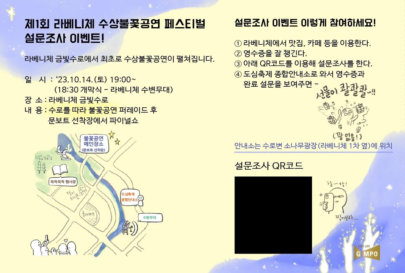 한편, 14일 장기동 라베니체 일원에 방문객을 대상으로 ▲라베니체 축제참여 동기 및 방문경로 ▲축제 만족도 ▲프로그램 구성에 대한 의견 조사를 진행한다. 15일에는 체험부스에서 게임(가칭 7초를 잡아라)이벤트와 병행한 설문조사도 실시된다.