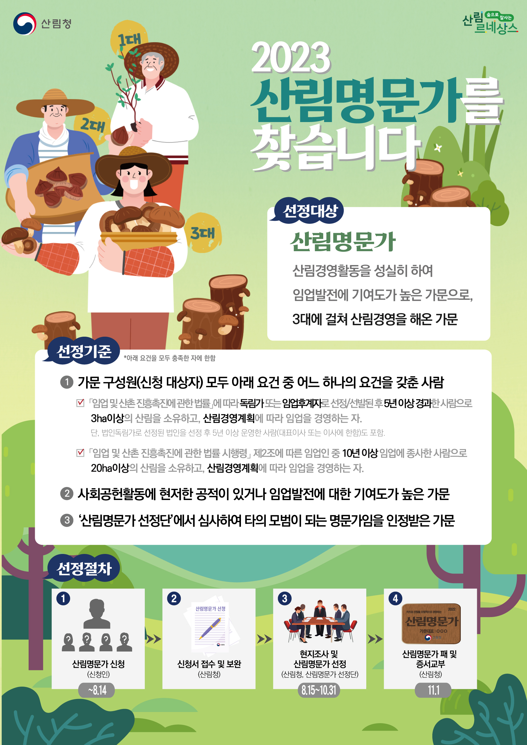 3대를 이어온 임업인 가문, ‘산림명문가’를 찾습니다.