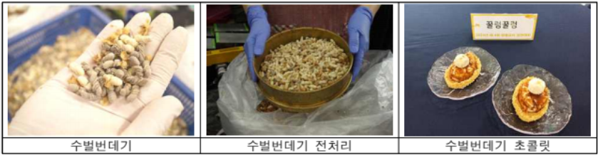 한편 수벌번데기는 양봉산물 경진대회에서 초콜릿, 다쿠아즈, 타코, 깐풍기 등 다양한 메뉴로 선보이며 식재료로서의 활용도 또한 주목받고 있다.