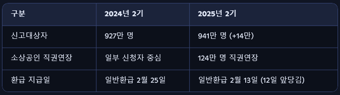 신고대상 과세기간은 개인 일반과세자의 경우 2025년 7월 1일부터 12월 31일까지, 간이과세자는 1월 1일부터 12월 31일까지다. 법인사업자는 예정신고 여부에 따라 기간이 달라진다.