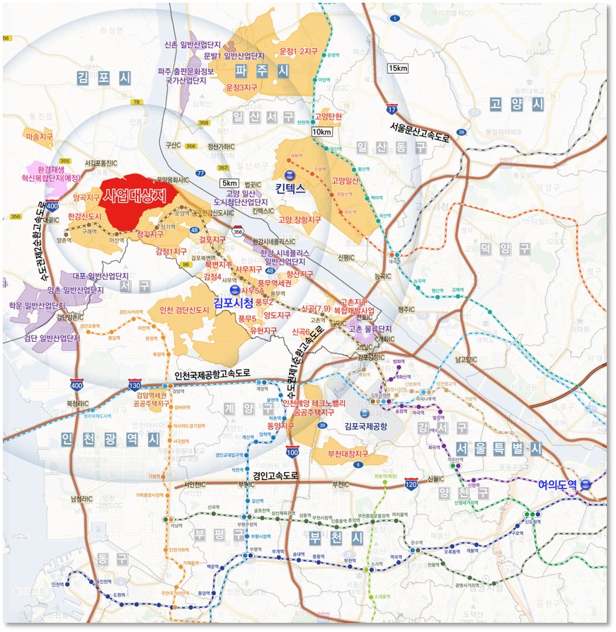 김포시는 ‘역세권 콤팩트시티’ 개념을 적용해 전철역 주변을 중심으로 고밀·압축 개발을 추진하고, 자율차·UAM(도심항공교통) 등 미래형 교통 체계를 접목해 스마트 자족도시로서의 성격을 강화한다. 또한 친수형 테마공원과 교육특구 활성화 등 생활환경 개선도 병행할 계획이다.