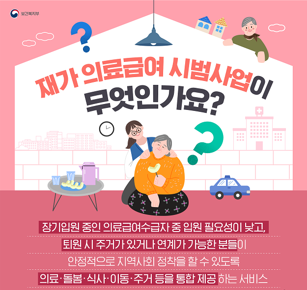 재가 의료급여, 73개 시·군·구로 확대한다 - 미디어 바로 보건복지부는 재가 의료급여 시범사업을 7월 1일부터 13개 시·도, 38개 시·군·구에서 16개 시·도, 73개 시·군·구로 확대 시행한다고 밝혔다.재가 의료급여 시범사업은 장기입원 필요성이 낮음에 www.mediabaro.com 의료·돌봄·식사·이동 등 서비스 제공으로 지역사회 복귀 지원 보건복지부는 재가 의료급여 시범사업을 7월 1일부터 13개 시·도, 38개 시·군·구에서 16개 시·도, 73개 시·군·구로 확대 시행한다고 밝혔다. 재가 의료급여 시범사업은 장기입원 필요성이 낮음에도 입원 중인 의료급여 수급자가 집에서 생활하면서 의료·돌봄·식사·병원 이동 등 서비스를 이용하는 지역사회 사업이다. 재가 의료급여 대상으로 선정되면 각 대상자별..