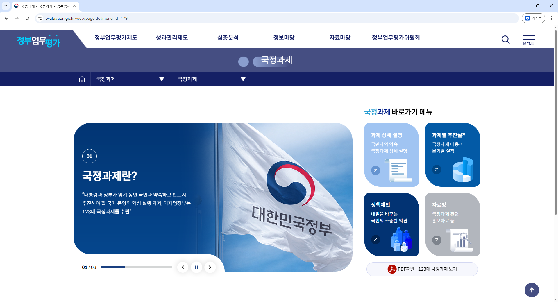 ▸네이버, 다음 등 포털사이트에 ‘정부업무평가포털’ 또는 ‘국정과제’ 검색