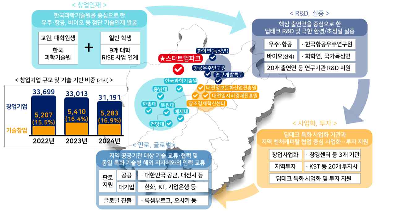 지역 내 혁신기관이 참여하는 ‘창업도시 추진단’을 구성해 민관협력 거버넌스를 구축한다. 엔젤투자허브와 한국벤처투자 지역 사무소도 확충해 투자 접근성을 높이고, 지역 창업 행사를 통해 기술·사업화 교류를 촉진한다.
